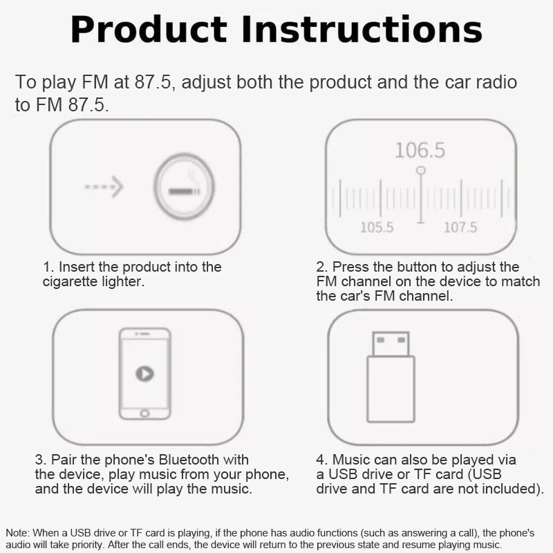 VERSATILE MUSIC PLAYBACK OPTIONSÂ - Play your favorite tunes through multiple methods, including Bluetooth streaming, FM radio, or micro TF card (32g). The built-in FM transmitter broadcasts your music directly to your car's stereo system.