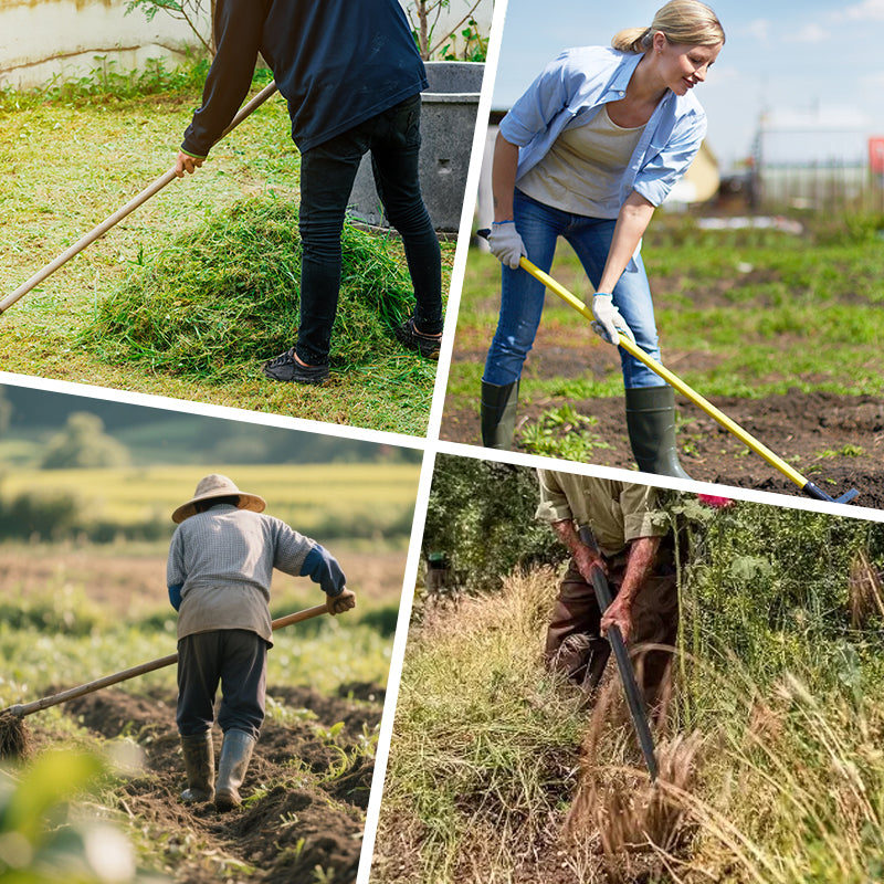 MANGANESE STEEL BLADE: Crafted from high-strength manganese steel, this weeding rake head is built to withstand the toughest conditions without bending or breaking. Its robust construction ensures long-lasting performance, making it an essential tool for any gardener.